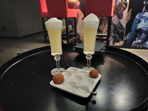 Me llamó la atención lo cómodos que son los taburetes altos con respaldo (todo un plus viniendo como apuesta arriesgada en este tipo de restaurantes). La decoración cuidada y original a la par que desenfadada (toque "gamberro elegante"). Limpieza por bandera y tono agradable de todos los trabajadores, sin errores ni descuidos. Posibilidad de ir con niños, cuidan ese detalle y si el niño come de casi todo, se adaptan y ponen facilidades en general (no fue nuestro caso pero pudimos comprobar que así era).