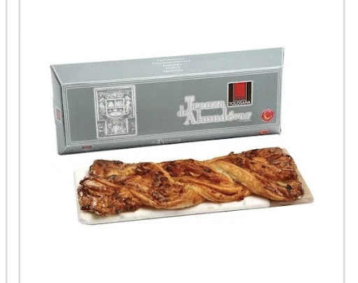 El buen hacer, capaz de sorprender !!! Al tener conocimiento de las trenzas de Almudevar y buscar información sobre su elaboración, historia y calidad, quise hacer un pedido de tres unidades. Las pedí un lunes, hice el abono de mi compra, de la que me descontaron el 10% por ser la primera ocasión ... y el miercoles antes de medio dia las tenia en casa, Hospitalet de Llobregat ( Barcelona ). UN 10 AL ENVÍO Cuando abro la caja y veo con que cuidado y esmero las han empaquetado, no puedo por menos que decir " esta gente es profesional". Envoltorio de papel de seda ; 2 hojas, cada una de un color distinto ... y en el fondo 2 bolsas para poder poner alguna de las unidades, por si quieres hacer un regalo. UN 10 AL PACKAGING Y el momento mágico llega cuando abres una de las cajas y puedes oler la trenza. Huele a pastelería de las de antes : a Magia. Claro, coges un cuchillo y dices " solo la pruebo " ; pero no, y han caido dos trocitos antes de hacer las presentaciones con el resto de la familia. ( menos mal que hemos pedido 3 ) UN 10 AL PRODUCTO.