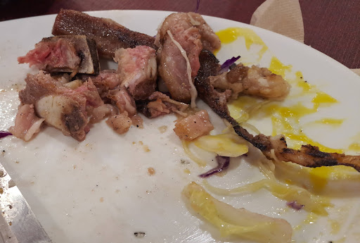 La comida en general muy bien, el punto de la carne correcto. La única pega las chuletas de cabrito que llevan un aceite muy picante.