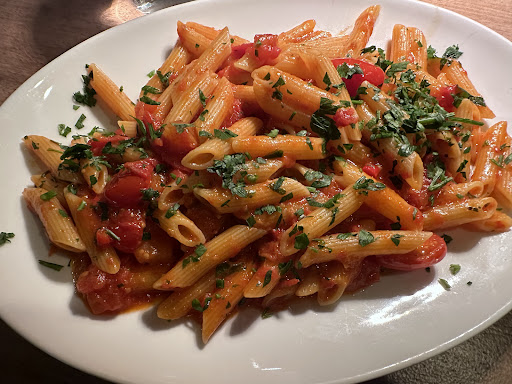The pizzas were underwhelming, with a soggy, overly moist center that made them difficult to eat. The pasta looked like a generic pre-made refrigerated dish, lacking any depth of flavor.