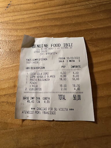 Read morePara empezar nos llamó la atención este sitio que está en una ubicación muy buena. Entramos y todo parecía bastante normal. Acto seguido, tras pedir las bebidas, tardaron un buen rato en servirnos (una cocacola y una copa de vino..) Luego nos decidimos y pedimos una boloñesa y una pinza ya que otros platos que queríamos no tenían, a los minutos les dijimos que queríamos también unos tacos como entrantes, jamás llegaron. Hasta ahí bien, la comida no estaba mal, normal, pero empezó a llover y bastante y aún teniendo toldos no los abrían, acabaron abriéndolos todos menos el nuestro, les preguntamos si podían abrirlo y fue a hablar con el jefe y para que no entendiéramos hablaron en italiano entre ellos (casualmente mi pareja sabe italiano) y le dijo que no lo abriera. Al rato empezó a llover todavía más fuerte y no les quedo otra que abrir el toldo que se suponía que estaba roto y no podían abrir. Pero para colmo, nos llegó la cuenta y vimos esto, 2€ por cubierto, algo que es ilegal ya que se considera explicito dentro del servicio ofrecido por el establecimiento.