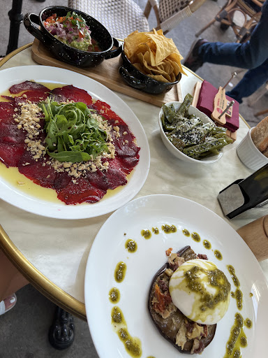 Read moreSi yo fuese tú, no vendría nunca a este lugar. Muchos fallos para una hora de estancia. 1- presión para pedir la comanda. Nos dejaron dos minutos para una carta que contiene literalmente más de 60 opciones. 2- el camarero, no sabía usar la nueva tablet con la que apuntan las Comandas y no supo poner qué tipo de pan queríamos entre las muchas opciones que hay para escoger en la carta y se lo aprendió de memoria para decirlo en cocina. 3- Cuando volvió diciendo que de 7 opciones de panes solo tenía dos. Le dijimos el que queríamos y por lo visto no lo dijo bien y vino el jefe a enseñarnos el pan que tenían y cual queríamos. Pienso que si no se tienen todos los panes debería poner en la carta sujeto a disponibilidad. 4- nos traen más las tostadas, pedimos unas con tomate y otras con serrano y la traen con serrano y queso fundido. 5- una vez que traen la tostada de jamón serrano, la cantidad de jamón serrano fue miserable, que en tres tostadas las lonchas juntas no hacían una loncha de un tamaño normal de jamón serrano. 6-cafés fríos (los pedimos calientes). 7-Los croissants sin más, buenos pero no increiblemente buenos como en teoría debían estar. He probado muchos mejores en otras panaderías caseras y encima te salen a casi 3€ un croissant, carisimo. 8-TE ENGAÑAN CON LA CUENTA. Me cobraron otro desayuno, el del queso, y lo supe de casualidad que me acordaba lo que costaba de memoria, pero cualquier persona no lo hubiese sabido ya que se cobra por desayuno n°... Y no especifica que son con queso, con tomate,... Así que fácilmente te pueden robar dinero sin que te des cuenta. Fui a decírselo y me dijo el camarero que no había cambiado mi tipo de tostada y entre ellos y el ejfe se pusieron a discutir que la tostada de jamón serrano no existía en el programa de la nueva tablet con la que tomar la comanda. Una vergüenza, me sacaron un nuevo ticket y de nuevo pusieron otro desayuno otro precio distinto que el de la carta, esta vez menos descarado pero seguía estando mal.... El jefe diciendome la excusa de que eran Camareros nuevos, delante de ellos. E invitándome a champagne diciéndome q estar enfadada no es bueno.... En fin, CARO, TE TOMAN EL PELO, CLIENTE GUIRI NO LO LOCAL. Precios...