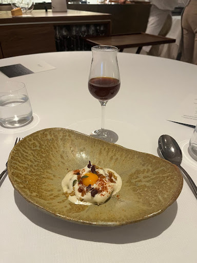 The wine paring (intl. one) was just average. The Muga rioja is good, but why serve an off vintage (2018) when a good one (15/16) is barely €25 retail!?). We also had a €70 per glass of champagne and the price wasn’t particularly clear to us when offered, but ok… Anyhow…In the end we paid about €600 and left very underwhelmed and disappointed for the lobby experience.
