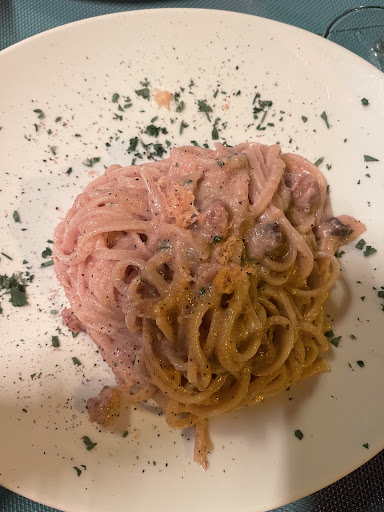 We ordered the pork gnocchi and the seafood carbonara, the carbonara was supposed to have capers in it, there were in total 2 capers, there was also hardly any fish in it and only a very slight flavour of the lemon making it bland, so it’s 19 euro for some plain shop bought pasta that I could make better at home. The gnocchi was nicer but there were only 4 pieces of pork which were 80% bone as you can see in the photo, again I could make far better at home and a packet of gnocchi is like a euro. Aside from the food the service was good and the waiter very friendly, I mentioned the lack of meat when he asked if it was good but I’m not sure he understood me or ignored it. They give everyone free lemoncello shots with their bill...