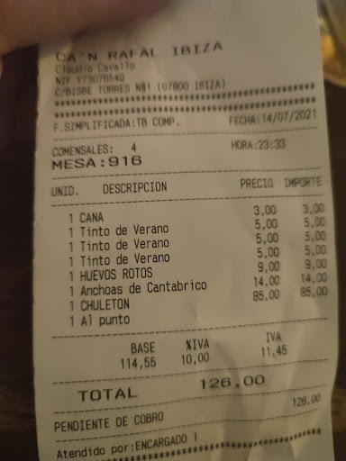 The house red wine is a step above a common house wine. Rich and velvety and a perfect accompaniment to the burger. Served with a proper brioche bun and generous helping of bacon. For 19€ this proximity to the tourist center of ibiza represents excellent value for money.