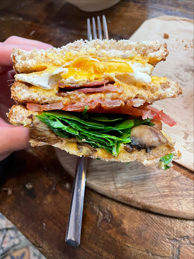 Read moreWe came to Retró Gusto twice for breakfast during our stay in Ibiza. They have plenty of indoor and outdoor seating. The entire place is decorated beautifully, giving cozy, chic, beachy vibes. The staff were all kind and attentive. The British sandwich consistently had the perfectly fried egg. We got this sandwich twice and both times, the egg was cooked enough to have the yolk be slightly undercooked but not enough to make the bread soggy. It’s honestly the best egg I’ve ever had on a sandwich. The pancakes with yogurt cream was phenomenal. The fruits were so fresh and It was beautifully presented as well. We also ordered the açaí bowl which of course included fresh fruits. I tried their pink rose latte, which not only looks beautiful but tastes lovely too. It comes with a shot of espresso so you can pour it in after you take your photo without the color changing. Very thoughtful. Their cappuccino was also delicious and a glass of freshly squeezed orange juice is a must! We loved this spot so much. Missing you...
