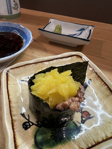 The chefs are incredibly focused, showing a nearly obsessive attention to detail. I was amazed to see them drying each piece of foie gras individually before crafting a gunkan with mango. And the wasabi? They serve the real deal here, freshly grated from the root.