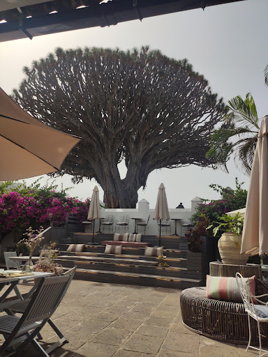 Casa del Drago has several locations, as it seems - it has a souvenir shop ranging from very artsy, unique souvenirs to the Standard hotchpotch you find at all the tourism places in the south (Shirts, Magents, strange Figures, etc). Then, it appearantly has a hotel(?) which I can say nothing about. And last but Not least, the Tapas Bar. It has a SO nice courtyard with great view to the Drago Milenario - this is really spectacular & nice to enjoy. The courtyard is framed in plants and a canopy, and there is a counter where Drinks and food are prepared. The service in the bar was not the best tough. We were ignored for quite some time and then the Team was very hectic, we didn't get a menu, weren't asked if we would like to eat something, weren't checked back if everything was fine or if we wanted something else... We took a vegan cappuccino (which was really good) and a Beer (which wasn't really cold) and then asked for some olives that were standing in big jars on the counter - these were really really tasty, so great recommendation to order olives if you like them (I love olives). Downside was that when I went to the counter to ask for them - because we were admiring them in the jars - we were brought a small bowl that was already standing on the counter, so not fresh out of the jar.. Bit hectic, as I already wrote. So worth for the ambiente and the view for a...