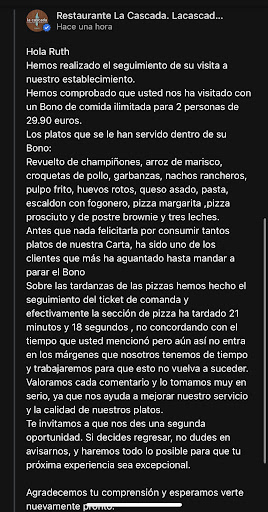 LO INCREÍBLE ES QUE A UNA RESEÑA SÍ QUE SON RÁPIDOS EN CONTESTAR..SI POR LO MENOS NOS HUBIERAN AVISADO DE LAS DIFICULTADES QUE TENÍAN YDEL RETRASO EN LA COMIDA...NO TENDRIAN QUE JUSTIFICARSE ATACANDO A UNOS CLIENTES QUE LE DEJARON UNA CUENTA DE 332'70 EUROS...DE HECHO EL PERSONAL FUE MUY AMABLE PORQUE AL SERVIR SABIAN QUE DABAN LA CARA...SE LO REITERO, UNA DISCULPA O EXPLICACIÓN DE LA PERSONA RESPONSABLE HUBIERA SIDO SUFICIENTE PARA QUE NO NOS FUÉRAMOS HASTA CON LA TARTA DEL CUMPLEAÑOS EN LAS MANOS PARA SALIR DE SU RESTAURANTE LO MÁS RÁPIDO POSIBLE..