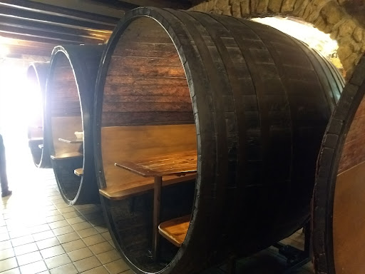 En resumen, recomiendo mucho ir a comer bien disfrutar de tan bonito restaurante con sus cosas de traginers sus preciosas cubas de vino para comer muy acogedormente en semi intimidad y su rústico estilo empedrado.
