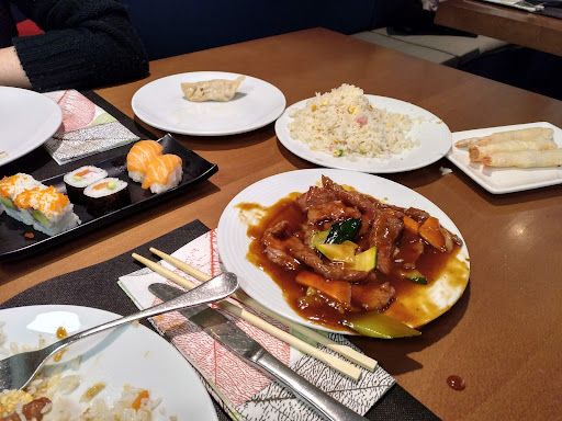 Si te gusta la comida china/japonesa y quieres salir de un apuro y quitarte el antojo rápido es tu sitio...de un nivel aceptable hay platos ricos y otros no tanto, el precio es de 15€ en festivos por cabeza y te entra la carta entera entre semana el precio es de 13 €creo recordar y al mediodía de 10 € hay ciertos platos que no entran ( en la misma carta lo específica) A mí gusto es caro ya que la comida no merece ese precio tan elevado, las cosas fritas suelen llevar aceite en exceso como los rollitos primavera. A cantidad la verdad es que no se quedan cortos, te ponen bastante cantidad por plato Puedes repetir el pedido las veces que quieras con un máximo de 5 platos por ronda