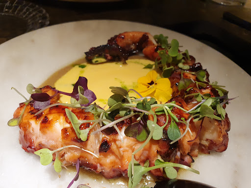 Pedimos pulpo, buñuelos de queso y foie. Los precios son algo altos, pero la calidad es bastante buena y sí que puede merecer la pena pagar los 22 euros el pulpo o los 18 del foie.