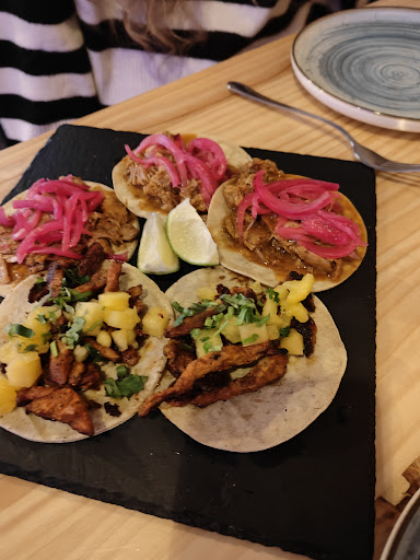 Calidad de la comida: a mi la verdad que me gustó bastante, no tienen carnitas y eso me dió algo de bajón pero pedimos cochinita pibil y pastor y por ejemplo no tuvieron ningún problema en dejar la cebolla aparte para mi novia.