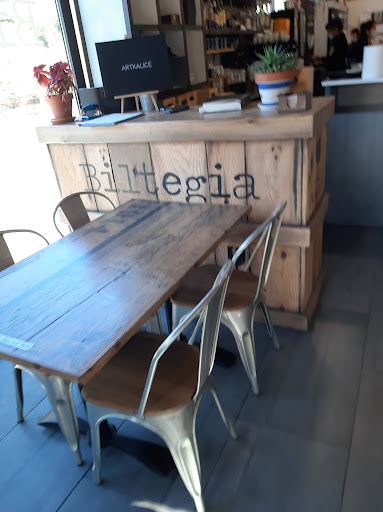 Read moreInmejorable recuperación del depósito de la vieja estación del tren de Latasa junto a la via verde que recuperó el trazado del tren que unía Pamplona con Andoain. Si tienes ganas y el tiempo acompaña, puedes coger una de las bicis recicladas que ponen que tu disposición. El local ha sido decorado con gusto, donde han cuidado hasta el último detalle, bordes de estanterías forjadas y remachadas con hierro una tienda de productos ecológicos se añade al local de hostelería basado en la economia social y cooperativa. He degustado el menú deldel mediodia, ensalada de arroz con lechuga y pipas de calabaza y unas albóndigas como hechas en casa, las patatas originalmente salteadas con cebollay de postre una tarta de queso con mermelada de arándanos casera. Los platos salen de la cocina casi instantaneamente. Reseñar que biltegia se ha convertido en un auténtico lugar de encuentro de Lasatarras y es fácilmente accesible al estar junto a la autovía mientras que una vez allí ni se oye ni se ve. El servicio excelente, profesional y sin perder la sonrisa....