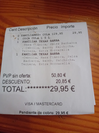 Al recoger la pizza acompañado de mis dos hijos (uno de ellos con necesidades especiales), veo que la pizza es solo de queso. Le indico a la chica que me está atendiendo que hay un error en el pedido, y me dice que no puede hacer nada y que me la debo llevar así.