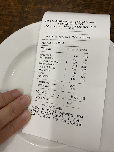 Read moreLa verdad pésimo pésimo la gente pasa antes de ti luego te toman la comanda y empiezan a sentarse otros comensales y les empieza a llegar hasta sus segundos platos y nosotros ni con el entrante bueno nos llega la ración de calamares por fin y te dise que es que el cocinero se olvidó de las gambas al ajillo que era el entrante bueno observamos la ración de calamares y claro comparada con otras que nos as puesto en su platito azul redondo cargado me ponen una bandejita blanca como de menú infantil en TripAdvisor adjunte la foto fatal y es la segunda vez que nos pasa en lo que va de mes la otra vez fuimos de noche el sábado pasado y lo mismo malas caras y comentarios de las empleadas de arriba diciendo que mira la hora que es y no para de entrar gente que si no tenemos casa etc y hoy lo mismo malas caras por recriminarle la comida que obviamente vamos a pagar la verdad comparándolo con Miramar san Cristóbal o el bolla deja muchísimo que desear ni comparación nos sentimos mal la verdad un sitio como este que siempre a destacado lo estén llevando a si sus empleados que pena ay que destacar que cuando está el señor con la señora y la niña llevando el cotarro en el pasillo ay si salen las cosas muy bien pero cuando no están es una estafa comer a...