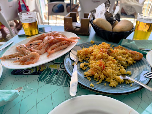 Chiringuito a pie de playa con comida típica de pescadito frito, rico y a buenos precios. No esperes grandes lujos, es un chiringuito de playa, pero es bueno en calidad-precio. Repetimos un par de días porque no nos merecía la pena perder tiempo cocinando teniendo el chiringuito a pie de playa. Todo lo que pedimos nos gustó: chocos, boquerones, sardinas...bien, no se puede hacer mucho con eso, pero si era producto fresco con buen sabor. El atún al pimentón estaba algo seco, y nada más reseñable. Al igual que el arroz, no creo que sea su especialidad ni el mejor sitio para pedirlo. Las puntillitas muy muy buenas, recomendables. Las cigalas cocidas también estaban buenas. Pero destaco, a parte de las puntillitas, las chirlas y las gambas, muy frescos y muy ricos. Las gambas con muy buen sabor y ración buena para el precio. Las chirlas muy buenas con una salsa para mojar pan todo el rato. Probamos de postre la tarta de 3 chocolates y muy buena. Muchos camareros, jóvenes, rápidos y amables. No hacen reservas, según llegas si hay sitio te sientas y si no, te apuntas en una lista la cual suele ir rápida. Si estás por la zona, merece la pena. y si no quieres ir a comer, al menos súbete a la hora del vermut y te tomas un par de cañas con una de gambas cocidas y así...