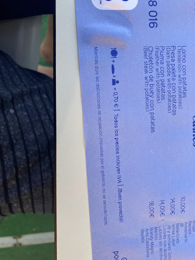 Read moreLas papas aliñadas y sardinas muy ricas, el lugar bonito, me falta por probar el arroz que aun lo estoy esperando...pero las camareras super rancias, a algunas le falta un hervor y media cocción, nada de simpatía, y con apariencia de no tener ganas de trabajar. Y lo peor de todo, vaya cantodad de moscas, nada comodo para comer, a mi por ejemplo no me gusta nada comer con 4 o 5 moscas en el plato y revoloteando por mi cabeza. Un lugar nada acogedor ni comodo, aunque este la comida buena. Yo no voy a volver. Hay muchos otros chiringuitos donde se come estupendamente. Nerea me atendio por ultimo y ella si que fue agradable...