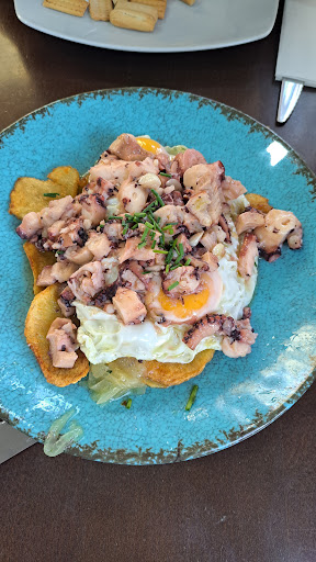 When we seated the employee came asking what we wanted we said we need to look the menu and we had some doubts cause we where not Spanish, he suddenly did a bad face and moved away, I called to ask some questions and he answered always in the bad mode. We ordered the gallego pulpo and a steak and after 15m the pulpo arrived. But not the steak. We waited more 15m for the steak that finally arrived but with a horrible presentation and of course I eated the pulpo already cause otherwise I was going to eat it cold.