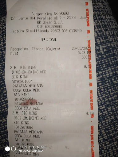 Read moreEl sábado pasado hicimos pedido por máquina al no darme ticket pregunté al encargado si había constancia de mi pedido y al decirme que no hice otro pedido. Al esperar mi menú compruebo que el primer pedido si ha salido al final y le pido que anulen el segundo. Anulan la comida pero no me devuelven el importe diciéndome que lo harán en 3/5 días. Pasado este tiempo contacto con ellos y me dice que tengo que esperar entre 7/10. No vivo en Jaén y no puedo hacer una reclamación por escrito in situ. Pero pienso hacerlo por la OCU de la que soy socia. No he recibido ni unas disculpas por el error cometido. La actitud del encargado el día que sucedió esto fue digna de replantearse si alguien así merece estar a cargo de un local y siendo la imagen de una franquicia como está. Sigo esperando mientras tomo las...