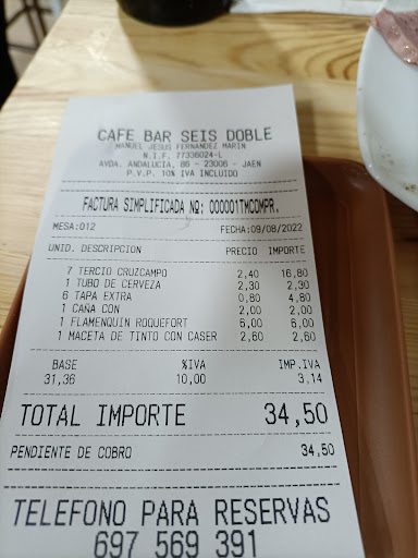 Read moreESTE BAR LLAMADO 6 DOBLE, dispone de un salón en su interior apartado de la zona del bar para celebraciones, comidas, cumpleaños etc, además de las mesas de bar en su interior y en el porche también dispone de unas mesas con sillas altas, el sitio es bastante grande aunque parece desde fuera normalico. Dispone de una terraza la cual siempre está llena que eso es por algo 👌. Con respecto a la comida las raciones están bien respecto calidad-precio-cantidad y lo importante es que siempre suelen poner la tapa aunque pidas raciones algo que a mi personalmente me gusta. Por poner un pero la fritura no es la fritura a la que estamos costumbrados o al menos la vez que yo la pedí (la tipica malagueña) pero esta buena. EN RESUMEN BUENA COMIDA, BUENOS PRECIOS, BIEN DE CANTIDAD, TAPAS BUENAS (SABOR A GRATIS). SITIO...