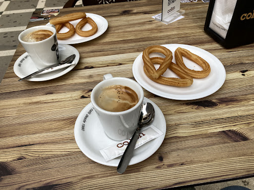 Read moreSoy una persona celíaca y debido a esto me es complicado comer en cualquier sitio, es por esto que siempre voy buscando cafeterías o bares sin gluten y la cafetería colon es una de ellas que tiene churros sin gluten, considero que tampoco es una cafetería especialmente económica y además de eso, vengo a la cafeteria con unos amigos pedimos cada uno lo nuestro y yo pido churros sin gluten el camarero apunta el pedido de todos y por consiguiente viene a la mesa a traerle a todos su comida excepto a mí, se le pregunta que donde estan mis churros sin gluten y dice que no los hemos pedido lo cual era mentira es más le he visto el ticket con ellos apuntados lo cual me parece ya bastante lamentable que me mienta en mi cara, el camarero coge y se va como si nada y al minuto viene diciendo que no tienen pero ya me habían servido el Colacao para que no me levantase y me fuese cuando ellos sabían que no habían churros sin gluten es más sin duende la mese y no quiso ni que le preguntásemos nada por qué sabían lo que ocurría. Y como es de esperar no puedo comer nada me parece bastante feo y encima no piden ni disculpas como en otras cafeterías y bares que si lo hacen cuando ocurre algo desafortunado simplemente...