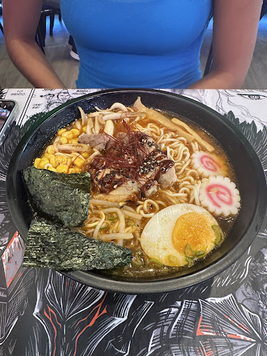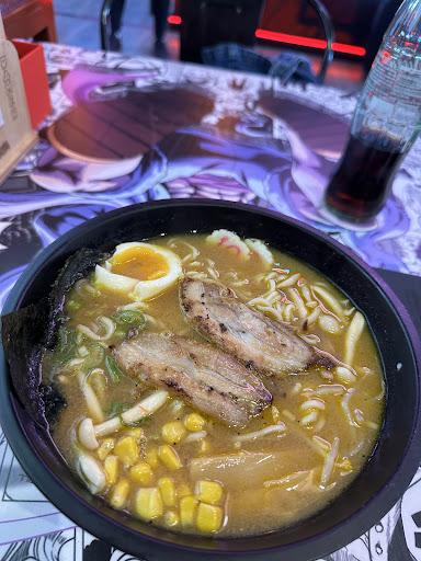 En cuanto a la comida, el ramen picante Pikachu estaba buenísimo, muy sabroso y bien presentado. Sin duda, lo mejor de la noche. Sin embargo, el plato por el que tuvimos el malentendido —el pollo al curry— fue una gran decepción: el pollo estaba sin ningún tipo de sabor, el curry muy flojo y el arroz totalmente pasado. Tan malo nos pareció, que dejamos casi todo el plato y solo comimos algo del pollo por no tirar la comida. Muy poco...