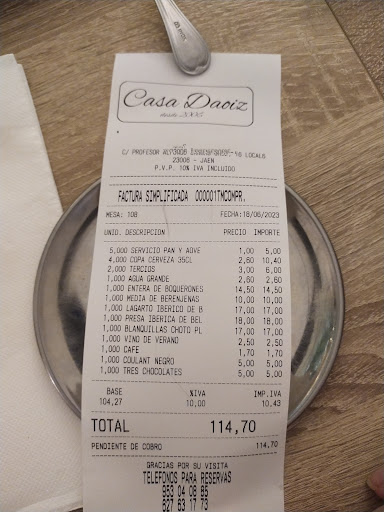 Read moreLa verdad que estuve una vez y genial, pero hoy he estado con familiares y ha sido un fracaso, tanto en tapeo como trato de camarero y propietario. Creo que el cliente tiene que ser respetado, han tenido una atención no propia para este lugar que parece ser de primera, pero deja mucho que desear, poca vergüenza del personal y trato al cliente. Y después de quejarnos por algunas deficiencias muy evidentes, nos dicen que no tenemos vergüenza. Lo siento pero no pienso ir a este lugar. Parece ser de padres a hijos cambia mucho el tema, deberían tomar ejemplo de tantos años que llevan manteniendo a los clientes y que ahora nos...