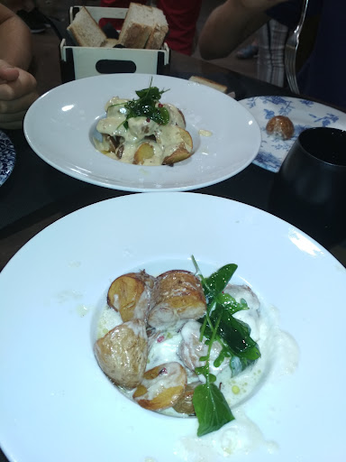 Lo que mal empieza mal acaba. Llamamos para reservar para 8 con unas horas de antelación, nos dijeron que llegásemos entre las 22-22:15h y nos tomásemos algo mientras nos preparaban la mesa. A las 9:45h nos llamaron diciendo que teníamos la mesa puesta así que apuramos para que no tuviesen que esperar por nosotros. Cuando llegamos nos tuvieron de pie un buen rato porque la mesa todavía no estaba.