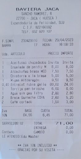 Como punto negativo tengo que decir que la torrija para el precio que tiene me parece una ración muy escasa. Nunca he comido torrija tan pequeña. A parte de pequeña estaba fría de frigorífico. Eso para mi gusto le resta muchos puntos. El café irlandés, estaba rico pero igual que l torrija demasiado frío. En conclusión, es un restaurante al que volvería y en cuanto a la relación calidad precio diría que es la correcta, ( a excepción de la torrija )