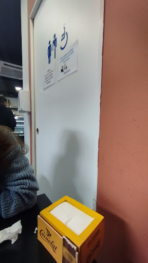 Por otro lado no sé si les funciona la campana extractora pero las veces que he ido una humera del freír de los churros por toda la estancia que no se podia estar. Además las mesas están hacinadas, una de ellas (donde nos han sentado hoy) está a escasos cm de la de al lado y en medio (literalmente) de la puerta del baño... Y comer con olores de váter no es nada cómodo. (Adjunto foto)