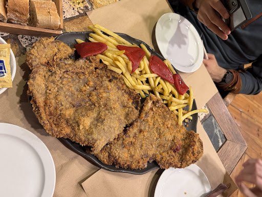 El tamaño es impresionante (la foto no le hace justicia), pero lo que realmente destaca es el sabor: carne jugosa, rebozado crujiente en su punto y un relleno bien equilibrado. Lo pedimos para tres personas y, aun así, salimos rodando de lo llenos que estábamos.