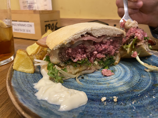 Read moreMadre mía! Que comida! Seamos sinceros hay pocos sitios en los que comer bien pero aquí se come muy bien. Pedí una hamburguesa clásica con patatas bravas que han hecho que vuelva a sonreír. Los platos desde el primer momento en que llegaron a la mesa llenos de color que hacen que se te caiga la baba. Y descubres una carne bien jugosa, tomates llenos de sabor, papas bravas crujientes por fuera y suaves y blanditos por dentro. Plato combinado de pollo delicioso junto a su huevo frito con la yema líquida y una rebanada de pan tostado con tomate. El café cremoso con espuma bien caliente y suave. El personal muy agradable y atento. La verdad es que me alegraron el día y volveré en cuando vuelva a Jaca ténganlo por seguro!! Aaa y el precio increíble así que precio calidad imposible de...