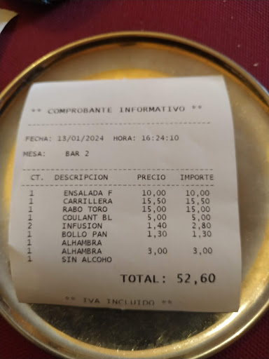 Read moreNo fue posible comer en la primera opción en Jarandilla el sábado 21 de mayo, por otra parte, día de comuniones en el pueblo. La carta del Parador no nos gustó y los precios como siempre que se trata de Paradores, disparatados por muy Parador que sea. Siguiendo indicaciones de google y trip, a pesar de que cada día es preciso ver más y más ya que muchas se reducen a expresiones "servicio amable y atento, buena relación calidad precio", calidad precio de dueño de un mercedes 300 o del dueño de un Dacia Sandero.... En fin. Bueno, el caso que sobre las tres de la tarde, nos sentamos en la terraza del bar restaurante La Cabaña en la plaza de Jarandilla. Se estaba muy bien, a la sombra, bajo soportales y piedra fresquita y la chicas encargadas nos atendieron amable y profesionalmente. Bebimos unas cervezas muy frías Estrella galicia a 1,50. y tomamos un entrecot, 14 euiros, delicioso, muy rico, hecho exáctamente en su punto, buen tamaño y buena guarnición, y un solomillo ibérico con torta casar, 12,50 euros, delicioso. De postre una leche helada de la casa por 2,50 y un par de cafés solos, café Delta, muy buenos, como siempre en esta parte de España, a 1,40. Comida deliciosa en un sitio relajado y acogedor y muy bien atendidos por las camareras....