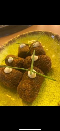 Read moreBastante por debajo de las expectativas que llevabamos. Luces y sombras en la comida, con sombras muy oscuras al pedir unas croquetas de jamón que poco menos que las tiraron en el plato, sin ninguna presentación, unas quemadas, otras blancas..., así como un canelón de bacalao que resultaba extremadamente pesado y con una salsa que daba la impresión de estar algo cortada... Luces respecto al excelente jamón y los ricos quesos (curioso que no requieren cocinado, sólo presentacion) y los torreznos (muy ricos, pero apenas 4-5 taquitos pequeños...., o mejor, muy pequeños). Aceptables sin mas, un entrecot (eso si, bien cocinado al punto) y la tarta de queso. Pero respecto al servicio, valorando positivamente a los camareros que, en general, fueron atentos y serviciales, es donde más se nota que el restaurante pretende..., pero no llega... En este sentido, indicar que no nos cambiaron nada (toda la comida con el mismo plato y cubierto). En resumen, deben mejorar en todos los sentidos para no caer en lo que nos pareció a nosotros, un restaurante un tanto...