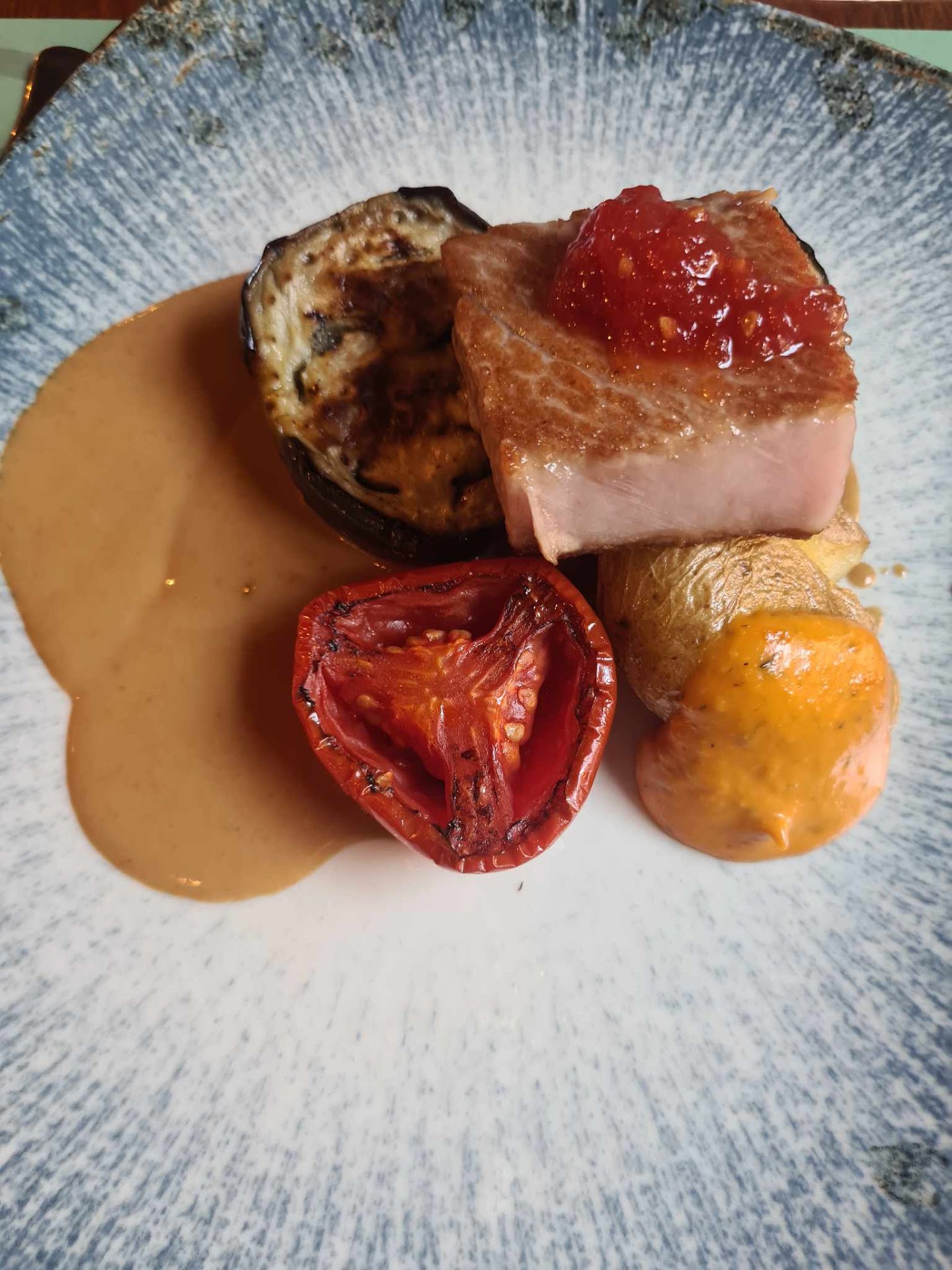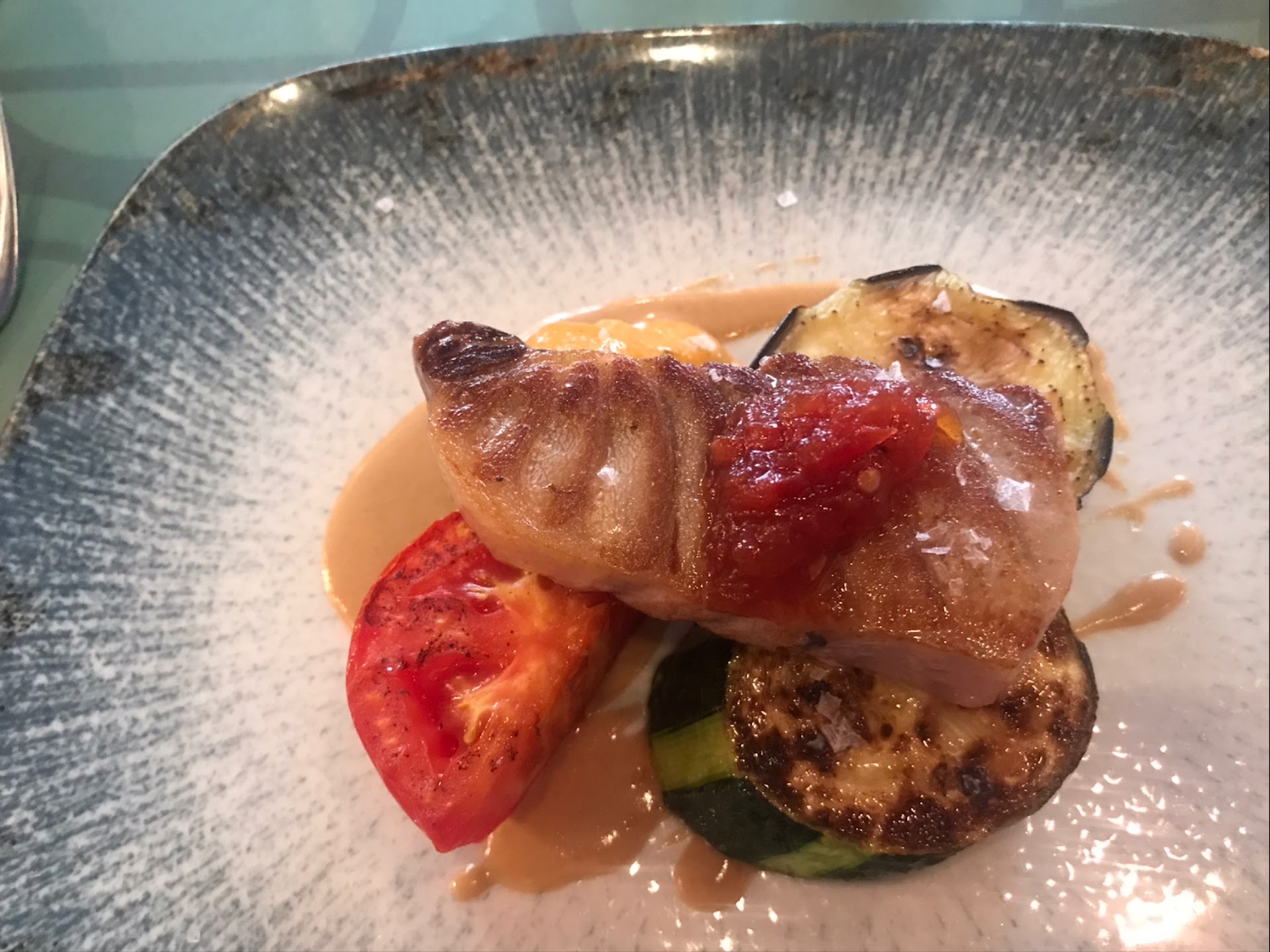 The tuna dish of my wife was very tasty she said. My lamp shanks were very thin and overcooked. Thankfully my wife´s dish had a lot of sauce that I could use so the meat was not so dry anymore. My glass was empty but no staff even came close to us that I had the chance to order (and also nobody came to ask if we are satisfied or need something), so I drunk my wife´s mineral water.