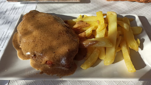 Pero vamos a lo importante, y es que la comida acabó llegando (primero mi peque que ya estaba que no aguantaba) que pidió albóndigas en salsa, y una ensalada cesar para mi otra hija, y después para mi (pedí puntullitas pero se habían acabado y las cambié por rabas) y por último el solomillo al roquefort que quería mi marido (después de comerse casi media panera mientras esperábamos) hubiese estado bien que nos pusieran aunque fuese unas aceitunas o algo para la espera. Los platos muy bien presentados y cantidades correctas, y la comida muy buena. Para la próxima esperamos probar la tarta de la abuela, que ya es que no podíamos más. Sin duda repetiremos en...
