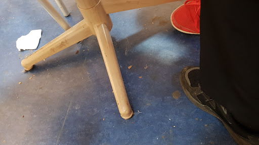 En fin, por último, las mesas y sillas estaban que daban asco al igual que el suelo de la zona, cosa que con la pandemia...