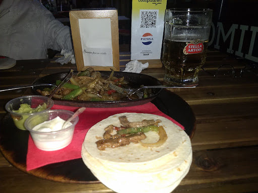 Solemos pedir, entre otras cosas, nachos con queso y fajitas de pollo. En una de las últimas ocasiones que pedimos, las fajitas no se podían comer por la cantidad de pimienta que llevaban. Este plato lo conozco perfectamente y nunca ha sido así. El pollo era sabroso y no picaba tanto. Parecía que se había caído el bote de pimienta entero en las fajitas. Era imposible comerlo, lo tiramos entero y llamamos al restaurante para comentarlo. Nos pidieron disculpas pero no nos dieron ninguna solución. Pagar un plato que tienes que tirar porque no es comestible y sólo te piden disculpas, no te dan la opción de hacerlo de nuevo, me hace sentir estafada.