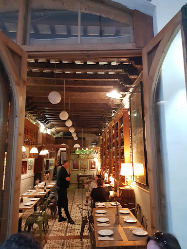 Está ubicado en una situación extraordinaria. En la pequeña calle Latorre, junto al Ayuntamiento de la ciudad y a la bulliciosa Plaza del Arenal. No es fácil de encontrar ya que no suele ser una calle de paso, pero merece la pena acercarse. Lo primero que te llamará la atención es su elaborada decoración. Un estilo modernito con un elevado toque vintage. Para que lo entiendas, muebles de madera, sillas de diferentes tipos, fotografías en blanco y negro populares con carteles de corridas de toros, etc. Todo muy raro pero que en conjunto queda bien. Son de especial relevancia sus arcos de estilo árabe.