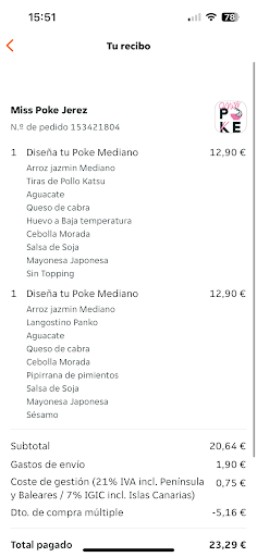 Hicimos un pedido por just Eat a las 14:47, especificando donde estábamos y que llamasen al llegar. Nos ponía que llegaba a las 15:50, a las 16:07 llamamos porque estábamos cerca del restaurante y nos extrañaba que tardase tanto . Nos responde una chica y nos dice que los tres últimos pedidos ya han salido y que no les quedaba ninguno más en tienda. Decidimos esperar hasta las 16:35 y vuelvo a llamar. Esta vez me responde un hombre y me dice que el repartidor ha tenido un problema con la moto y que no encontraba la dirección y que como no la encontraba se ha vuelto Luego me cuenta también que no ha encontrado mi número de teléfono... (En ningún momento recibo llamada para preguntar y por lo menos hacer el intento de llegar y habiendo trabajado en un sitio de comida a domicilio cuando un repartidor tenía duda de una dirección llamaba antes de salir al cliente para poder hacer su trabajo .) Su respuesta es que ya estaban cerrados y que el pedido ya no me llegaba. Me dice que a las 20:00 llega la encargada, que llame y buscamos una solución. Acabo pidiendo mcdonalds desde la misma App y para la misma dirección que me llega en 20 minutos y sin ningún problema , acabamos comiendo a las 17:30 de la tarde. A las ocho llamo por teléfono para que me den una explicación de por qué he pagado por un pedido que nunca ha llegado. Me contesta un chico y me coge los datos porque me comenta que la encargada entra a las 21:00 y que ella se va a poner en contacto conmigo cuando entre. A las 22:17 llamo porque nadie da la cara, me descuelga una chica y comienzo a ponerle en contexto, me comenta que la encargada está de VACACIONES que no sé qué y mágicamente se cuelga la llamada , tengo que llamar 3 veces más para poder terminar. A la tercera me lo coge para contarme la historia de que iba a llamarme pero que quería mirarlo bien, (la que me iba a llamar era la encargada 🤷🏻♀️) que hoy han tenido mucho trabajo y que han tenido que recurrir a repartidores de Just Eat, cosa que en ningún momento me han explicado anteriormente. He visto muchas incongruencias en la historia, uno dice que ha sido el repartidor de la tienda, otro que ha sido de just Eat, etc. No me puedo quejar de la solución que han dado , pero honestamente esta mala gestión y las historias que cuentan que no cuadran quitan las ganas de volver a pedir. Ha sido una pérdida de...