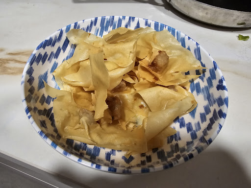 Después, la comida no era para tanto. Y mucho menos, para el precio que tenía. Fui bajo la recomendación de un conocido y descubrí que el wonton frito, podría soltar muuucho aceite o que el pollo con almendras, contara solamente con dos de las susodichas. Lo de los guisantes congelados, puede llegar a ser un clásico, pero que falte pan de gambas en el recibimiento, fue algo que me chocó.
