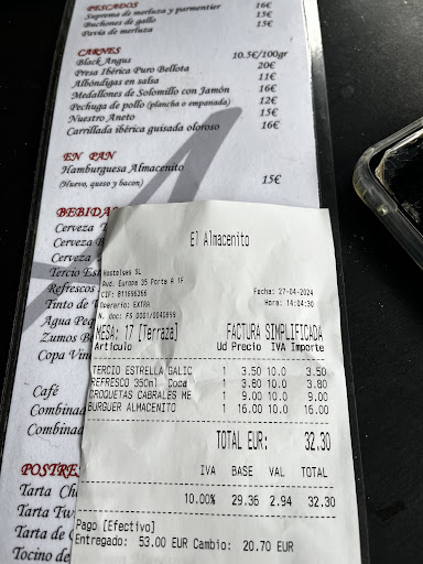 Read moreParamos mi pareja y yo porque era lo del mundial de gp… desastroso. La comida la verdad que estaba muy buena pero no merece la pena por venir tanto por el ambiente como por el servicio. Lo primero, preguntamos si reservaban y una chica de fuera nos dicen que si que preguntaramos dentro y cuando entramos nos dicen que no. Nos fuimos a dar una vuelta porque era temprano y sobre las 2 volvimos y habia mesa libre. Nos sentamos fuera,mi pareja va dentro a pedir pensando que con todo el follon fuera era autoservicio, y claro como algo logico le cobran (1 tercio estrella y una coca cola) 6€. En ese mismo instante estaba yo fuera y viene la chica y le pido y le comento que no pasa nada que traiga la bebida que nos la bebemos aunque ya la tengamos la otra de antes . Pedimos tambien de comer … SORPRESA, …los precios… la bebida fuera mas cara , la hamburguesa mas cara que lo que ponía en carta… por supuesto no me han cobrado el servicio de pan y picos porque es que ni nos lo pusieron. Me tuve que comer las croquetas con las manos. Sale mas barato irte borracho que fresco. Tercio 3,50€ Coca cola: 3,80€