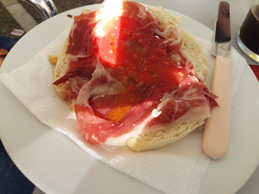 Usually in a place like this you know what to expect but all was surprises here. We ordered the usual breakfast of 2 coffees and 2 tostadas. The coffees arrived without the toast - delivered by a different server (so far so good but a little unusual.) After waiting long enough to start to become agitated, we saw server 2 wandering around with - what looked to be - our tostadas.he then disappeared. After a while we asked about our food and he was surprised, told us it wouldn’t be long and it finally appeared 5 minutes later. It was tasty but simple so that’s expected. Based on this story so far, you can only imagine how long it took to get the bill. We asked after working up a sweat flagging someone down. He told us how much, agreed to payment with card and left (to get the machine, we assumed). He never returned. Eventually, we went in to pay. Of course there was a huge discussion and disagreement between server 1 and 2 about what we’d had and, thanks to the woman working inside and my explanation, we sorted out the bill and paid up. I have no idea why this happened but it did and there are plenty of other places...