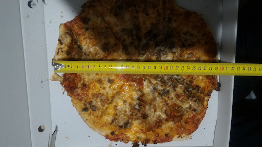 Read more¡¡ Madre mía !! Cómo ha decaído este local con lo que fue. Soy cliente de esta pizzería desde hace muchísimo tiempo, y prácticamente puedo decir que pido pizzas a este local un promedio de una vez al mes, pues ya me he cansado de tanta estafa. Cada vez ponen menos ingredientes, la forma es de todo menos redonda, parece que la hacen a patadas y para colmo, llevo quejándome últimamente de que sobra mucha caja para tan poca pizza, hasta que ayer me encabroné y cogí el metro para comprobarlo, y mira mi sorpresa, no estaba equivocado. Pido 2x1 en pizzas Grandes (33cm) y me dan medianas (30). Si pido Super (42cm) no supera los (38cm). Las imágenes hablan por sí solas. Por cierto, cada vez el trato al cliente es peor, ya no existe cordialidad como antaño había y desde hace un tiempo ha cambiado su "Sistema" de recogida, osea un caos si vas a recoger... :-/ Con tal baja calidad y servicio, ofreciendo menos por el mismo dinero, ya hay una variedad de oferta aquí en jerez que ofrecen más por la misma cantidad. Le pongo 1 estrella porque no me deja...