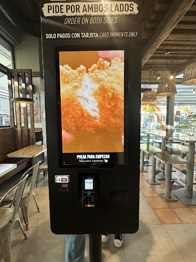 Read moreUn lugar bueno para comer si te gusta la comida chatarra aunque hay que destacar que los sabores son buenos, las patatas muy buenas, sazón, textura y temperatura muy buena. En cuanto a los ingredientes de otros productos se puede decir que son frescos, por lo menos en mi visita la calidad de la comida fue buena comparado con otros sitios de comida rápida que esto lo han descuidado. El servicio, aceptable, aunque la mayoría de empleados en estas cadenas de comida rápida parece que están sólo por un salario, casi nunca se les ve una sonrisa que te invite a sentirte bien recibido, que vale la pena visitar estos lugares más que por el mero hecho de querer comer. El ambiente no era malo pero varias mesas estaban desatendidas por el personal que lejos de preocuparse por mantener las mesas y el local limpio por un buen rato desaparecieron, posiblemente estaban en la parte de atrás de la cocina que si bien está a la vista no te permite ver hasta el fondo donde imagino pudieron haber estado ocupados pues parecía que la tienda estaba vacía, aún si deseabas ordenar algo adicional parecía que el turno había terminado o el negocio había cerrado no se demerita el que los comensales no les interesa coger los residuos materiales que no consumieron y el material envoltorio de los alimentos, con 3l objetivo de colocarlo en los contenedores de basura ubicados dentro de las instalaciones con este fin. Respecto a calidad precio me parece que está acorde, especialmente si mencionamos las promociones. Buena...
