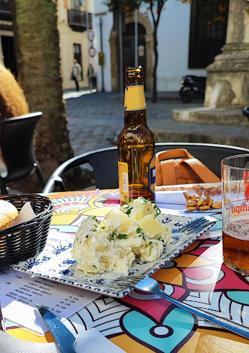 Read moreLa atención del joven de la terraza fue un 10, muy amable y diligente. El lugar es muy bonito porque los veladores están en una plaza espectacular, muy buen ambiente. Lo peor la comida, no mala pero sí muy mejorable. Cervecitas bien fresquitas. Pedí unas croquetas de rabo de toro... para mi gusto la termomix ha hecho mucho daño a las cocinas, las croquetas eran caseras pero esta termomix hace la masa exactamente igual, sin imperfecciones... para mi es insulsa... mejor hechas totalmente a mano. Luego Pedí berenjenas fritas con un lecho de salmorejo... muy bueno el salmorejo pero eché de menos que las berenjenas estuvieran más crujientes y...
