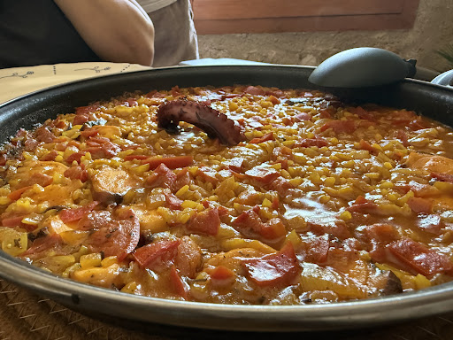 Read moreFuimos un grupo de amigos a comer. Nos pidieron con antelación pedir los arroces. Uno de verduras al P.X, do extremeños y dos de costillas. El sitio es un pequeño hotel muy bonito de 7 habitaciones en un lugar tranquilo. La atención fue muy buena pero lamentablemente no puedo decir lo mismo de los arroces. Nos encontramos con un arroz de verduras insípido ( el toque de P.X no lo notamos encontramos ningún momento) y los otros dos tipos con muchísima zanahoria y con sabor potente a pinchito. Además el arroz estaba pasado. Es una pena porque considero que pagamos un precio bastante alto por persona para lo que comimos. Recomendaría el sitio para ir bien a dormir o para comer otra cosa que no sea arroz aunque en la carta no había...