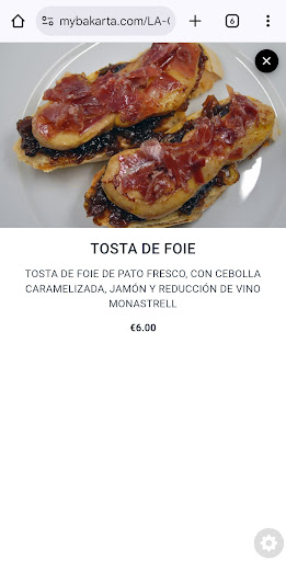 It seems like that depicted food items on the menu are not what is actuall served from a size perspective. We orderd two toasts one for 6 (!) Euros and one for 4.5 Euros. On the picture in the menu it clearly shows 2 pieces of toast with toppings for 6 Euros and 1 full piece of toasted bread with toppings for 4.5 Euros. What we got was 2 small pieces of toast each, clearly half of what a full toast would be. Common sense is that this is half of what someone woulf expect. This is way too expensive. You can eat much cheaper but better even in Valencia or Barcelona in comparable places. So, either they ripped us off on purpose or this is really what they sell (which would then need to be made clear to the customers in the menu). Taste of the food was good, but there is clearly better tastes...