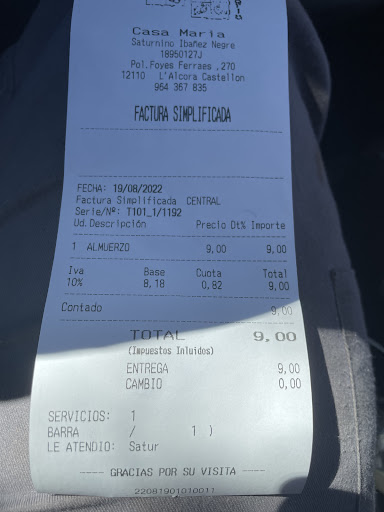 Read moreLa comida no está mal, dentro de lo que cabe esperar de un menú diario de polígono industrial pero el trato horrible. La camarera no sabía explicar los platos que le preguntabas y con malos modales y a la hora de cobrar el camarero te cobraba igual los menú de café que sin café y su respuesta era entre risas “la otra vez también te parecía caro, siempre te parece caro”. Cuando era la primera vez que iba y se lo dije. No...
